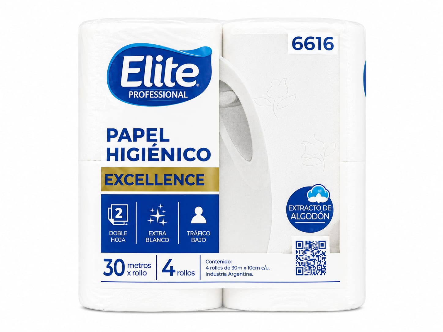 Papel higiénico blanco excellence doble hoja por 30 metros cada rollo. Pack 4 rollos.